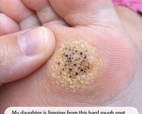 My daughter is limping from this hard rough spot with black dots on her sole. She has a dance recital tomorrow and is crying in pain. Need a fast fix!. Full article