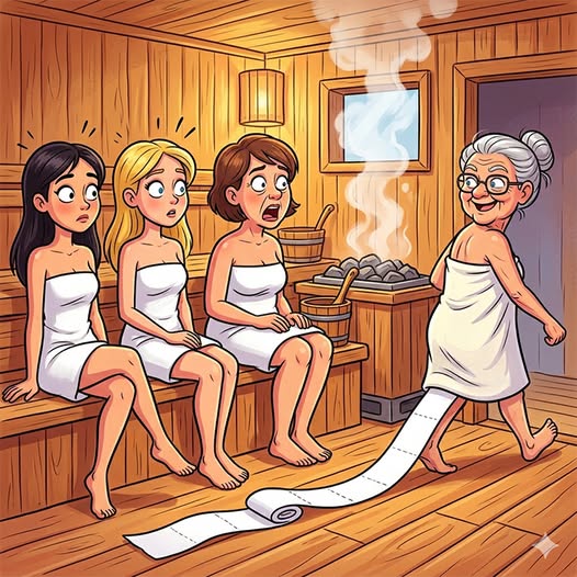 “That was my phone,” she said. “It’s integrated into a microchip in my hand.” The middle-aged woman chuckled nervously, glancing at her towel as if it could magically grant her a high-tech upgrade. But before she could speak, the senior citizen got up and left the sauna. Moments later, she returned confidently, with a piece of toilet paper trailing conspicuously from her behind. The other three stared in stunned silence, eyebrows raised in confusion.