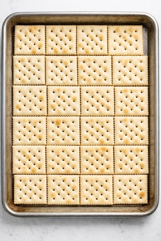 Put dry uncrushed saltine crackers in the sheet pan and 3 other ingredients to get a baked treat so mouthwatering your friends will be begging for mor