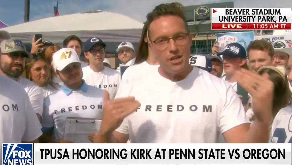 “Turning Point USA, at the game of the week, Penn State versus the Oregon Ducks, this is going to be a massive game. This was a game that Charlie Kirk was going to attend. Charlie Kirk loves Oregon, but he also has a bunch of fans at Penn State and has done huge events there,” Johnson continued. “Turning Point USA is going to be handing out 5,000 Charlie Kirk freedom shirts at that game.”