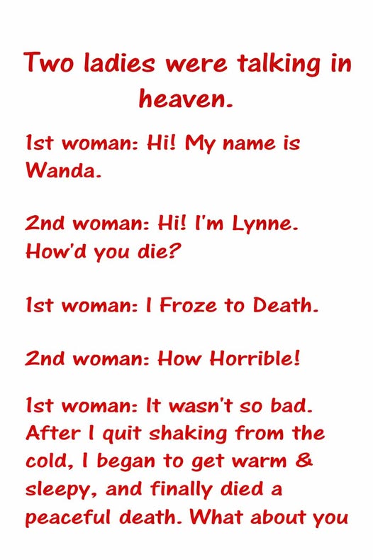 Two ladies swap ‘How I Died’ stories in heaven — and the punchline is priceless